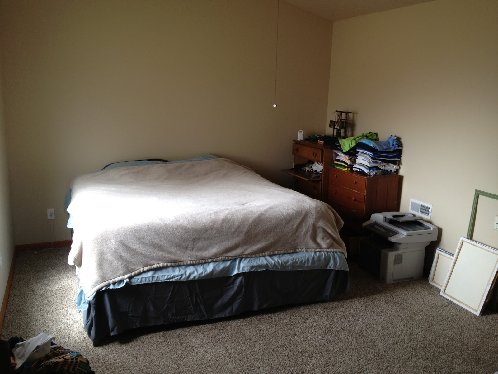*Weston does have a room, it's just not shown because he was sleeping while we were taking pictures. You're not missing anything though, it looks identical to the guest bedroom, mess and all!! We're working on lots of projects for him. We'll show ya'll the finished product later (aka like 3 months).